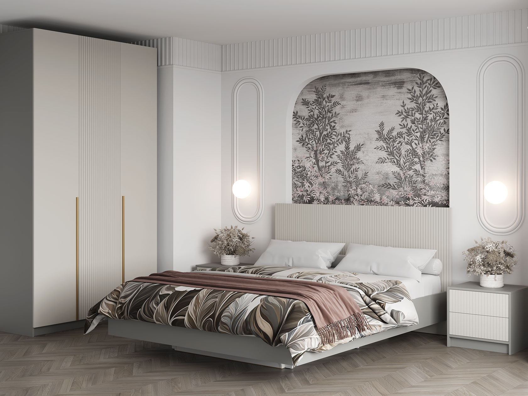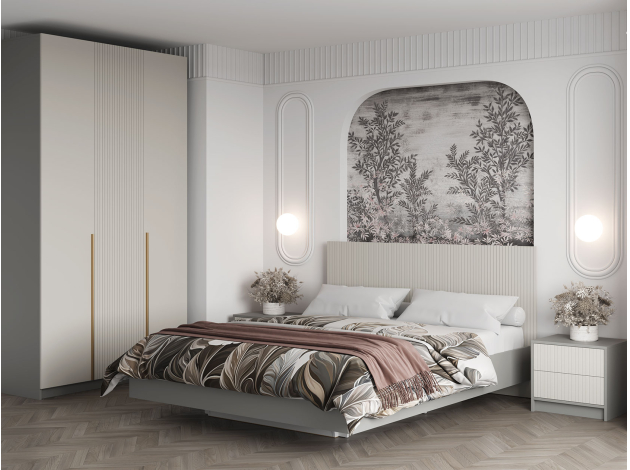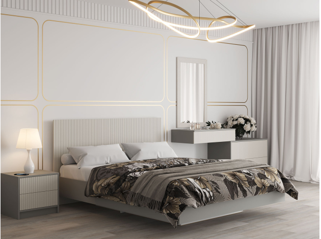Высокое изголовье двуспальной кровати Селена украшено стильной фрезеровкой. Тонкие симметричные линии подчеркивают строгую геометрию модели. Конструкция с «парящим» над полом основанием смотрится легко и невесомо. Кровать подходит как для небольшой, так и просторной комнаты.