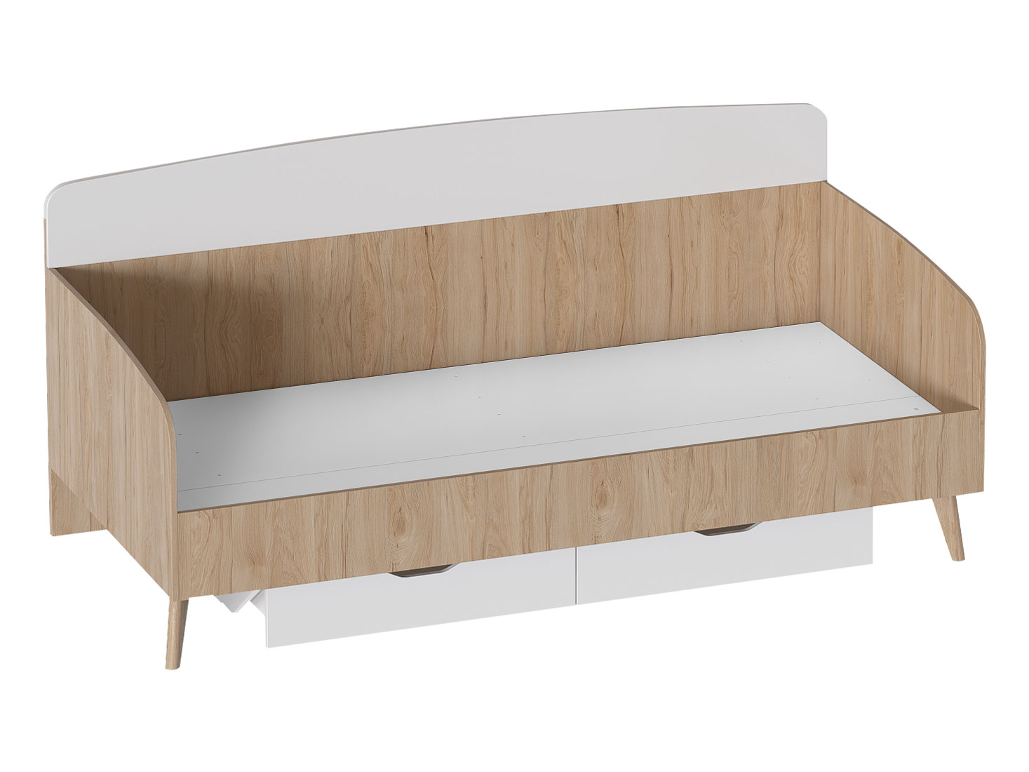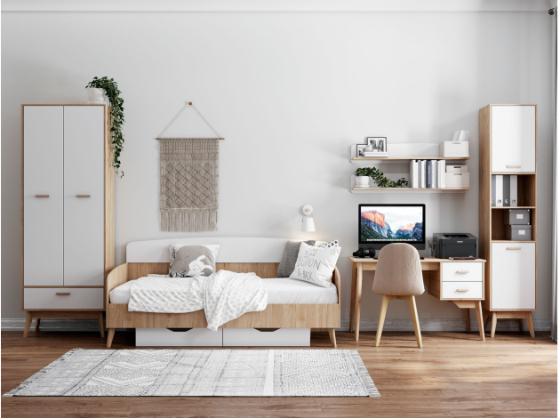 Кровать Калгари — комфортная модель для отдыха и сна с актуальным дизайном. Гармоничное сочетание светлых оттенков и текстуры дерева делает кровать универсальной для ребенка любого пола. Спинка и бортики защищают от контакта со стеной. Небольшие ножки придают мебели аккуратный облик и облегчают уборку напольного покрытия.