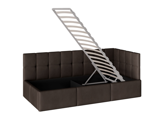 Тахта с подъемным механизмом Стелси ПМ удобно разместится даже в небольшой комнате. Модель выглядит стильно, а также она функциональна и практична. Спальное место легко откидывается благодаря подъемному механизму, открывая доступ к бельевому ящику.