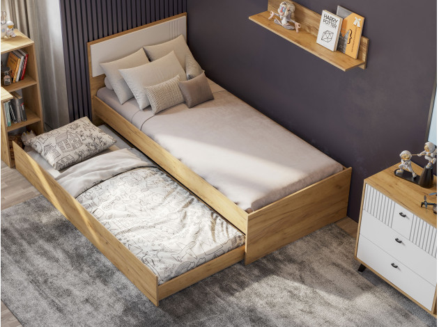 Кровать Милан Дуб золотой / Белый матовый С выкатной секцией С анатомическим основанием