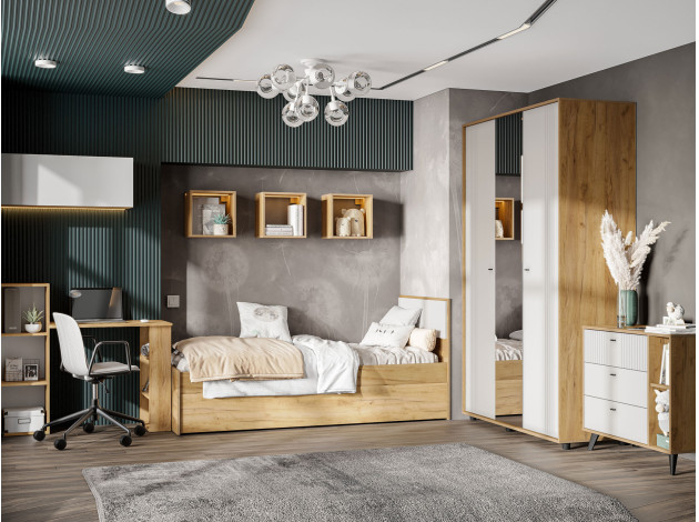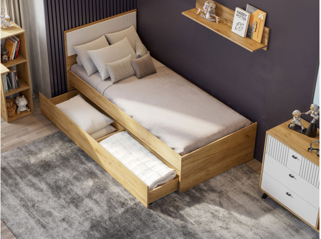 Кровать Милан Дуб золотой / Белый матовый С одним выкатным ящиком С анатомическим основанием