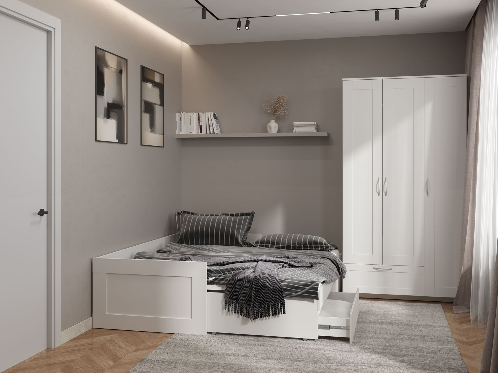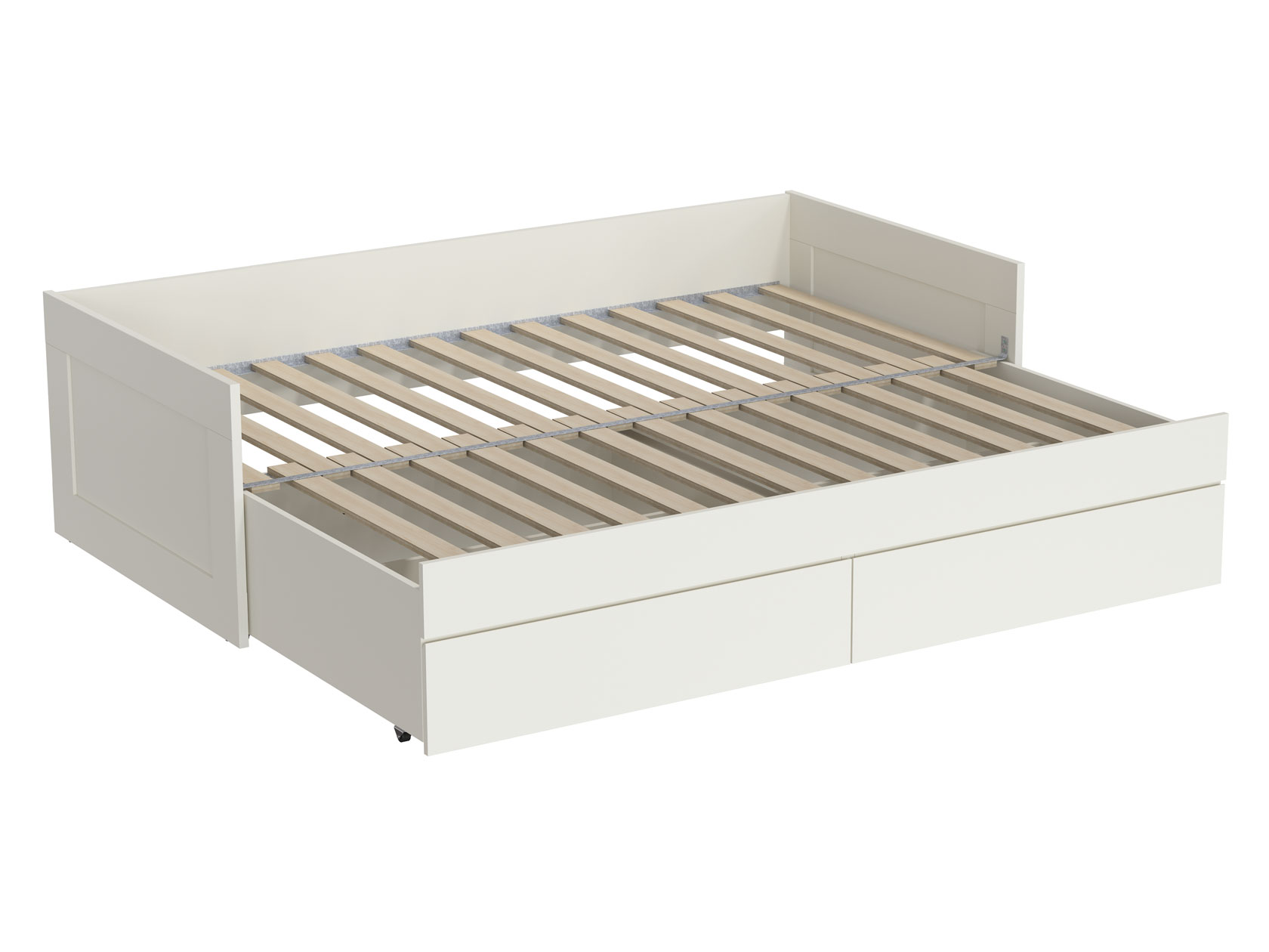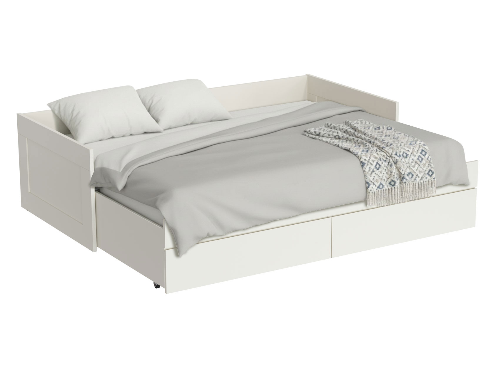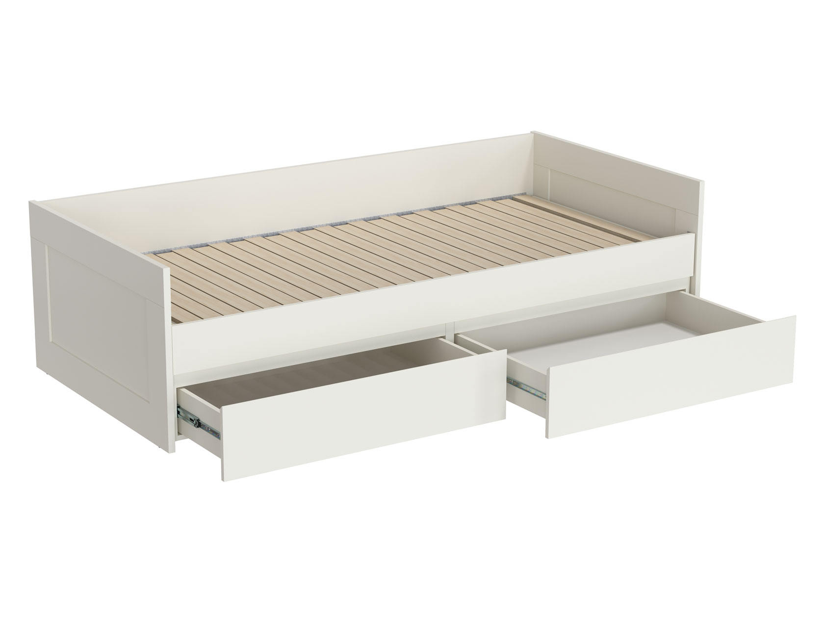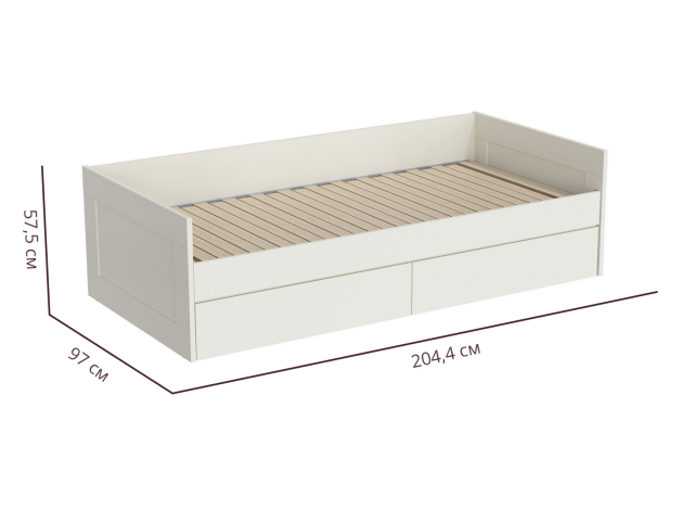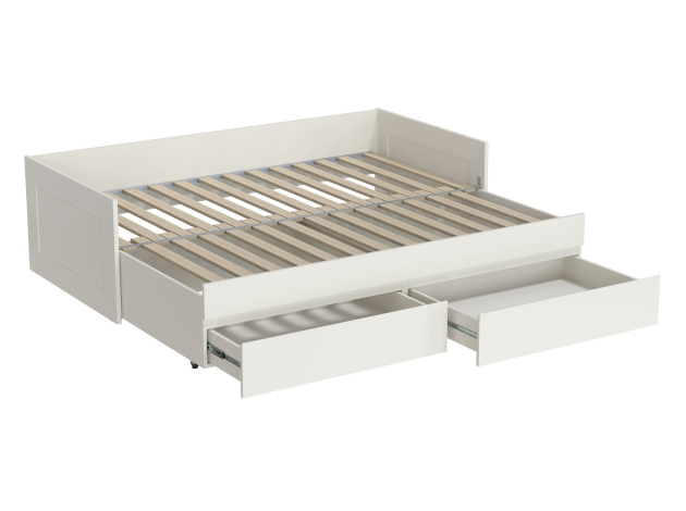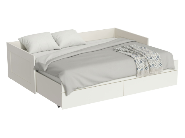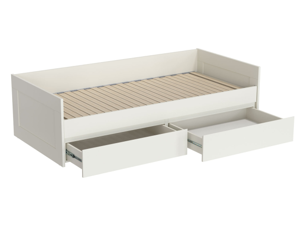 Раздвижная кровать Нордик объединяет комфортную зону для отдыха и удобную систему хранения. Бортики защищают от соприкосновения со стеной. При необходимости конструкция раскладывается, образуя большое спальное место. Реечное основание обеспечивает приток воздуха к матрасу. Выкатные ящики помогут держать в порядке постельные принадлежности или одежду.