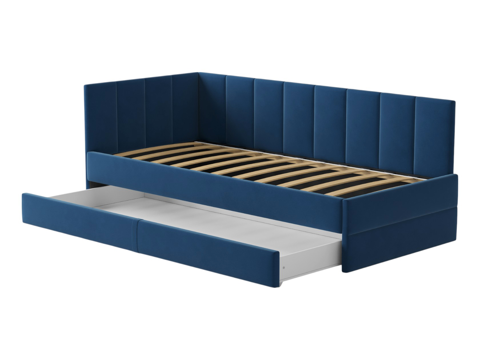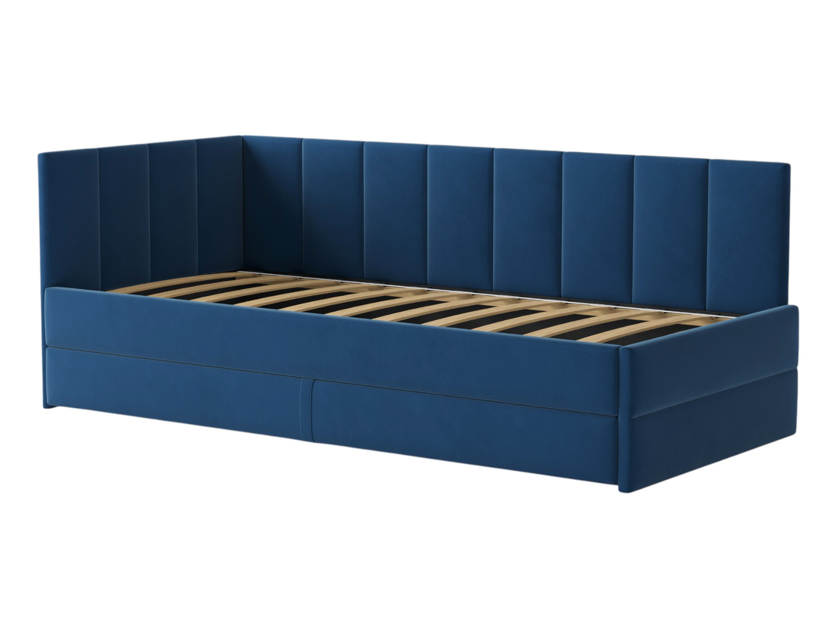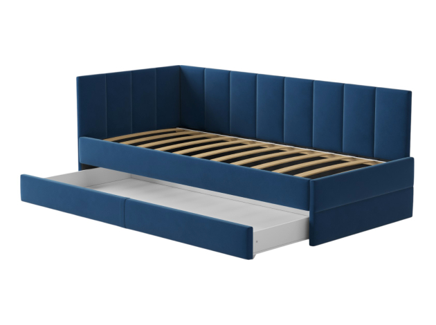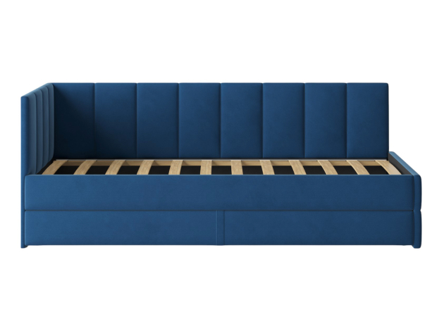 Тахта Астра позволит обустроить уютное место для сна, которое будет актуально смотреться в любом интерьере. Мягкая обивка приятна на ощупь и создает дополнительные безопасность и комфорт. Спинка украшена декоративной строчкой. Основание с ламелями обеспечивает приток воздуха к матрасу. Выкатной ящик на роликовых опорах поможет аккуратно хранить постельные принадлежности.