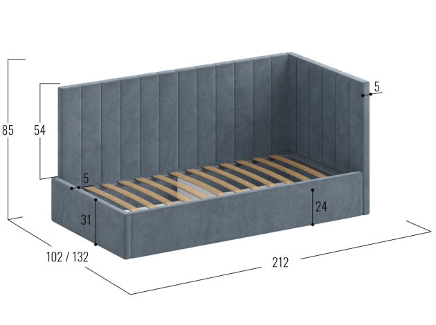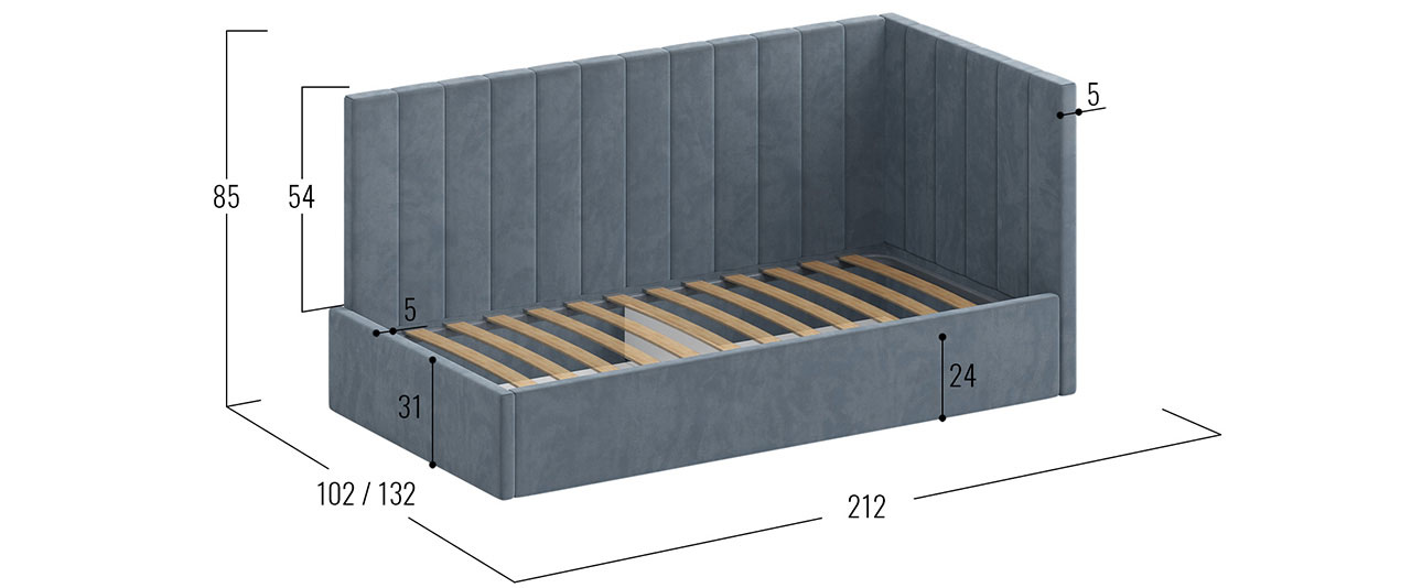 - Высота изголовья от основания: 54 см.