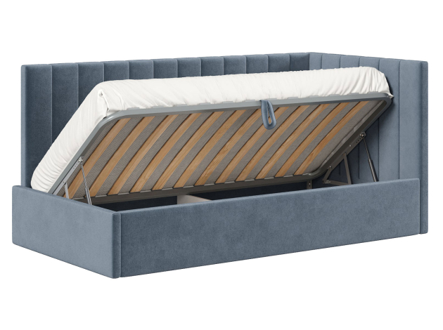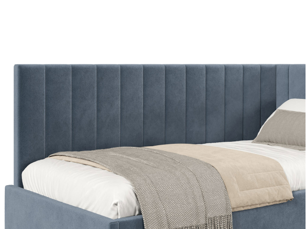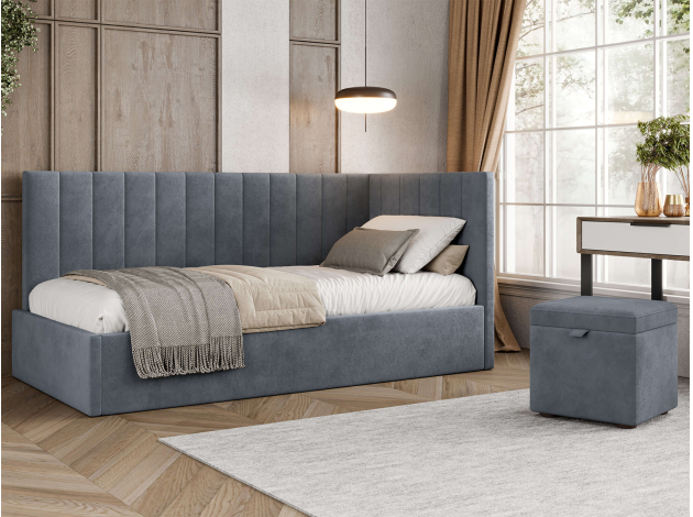 Тахта Берта ПМ украсит интерьер любой комнаты. Днем модель послужит уютным местом для отдыха, а на время сна заменит полноценную кровать. Подъемный механизм открывает быстрый доступ к бельевому коробу. Спинка и боковина декорированы вертикальной стежкой, которая подчеркивает лаконичный силуэт.