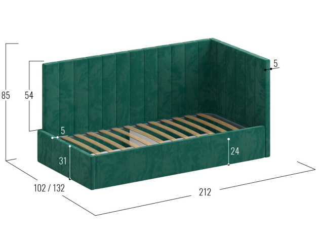 Тахта Берта ПМ Изумрудный, велюр 120х200 см