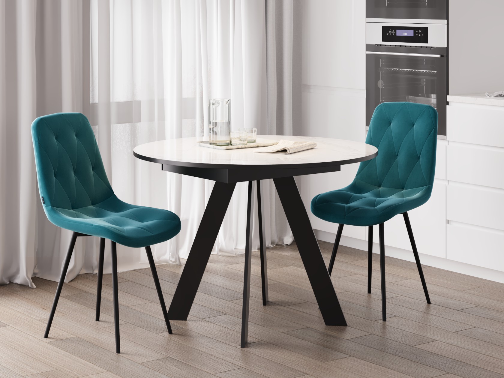 Мятный, микровелюр / Черный, металл
