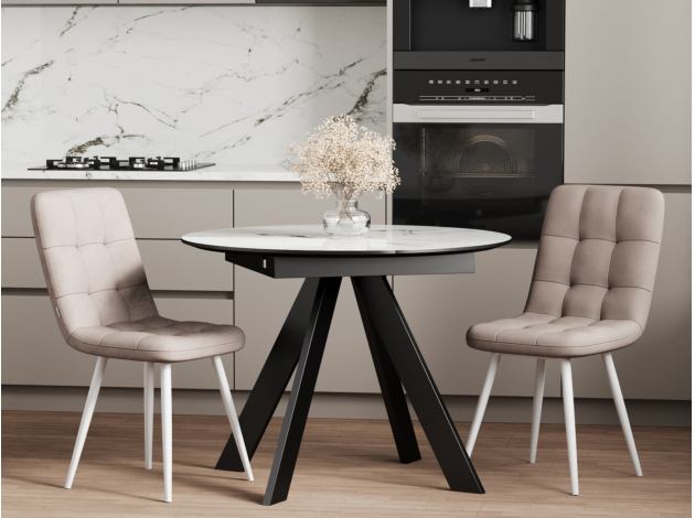 Стул Дэниел Бежевый, микровелюр / Белый, металл