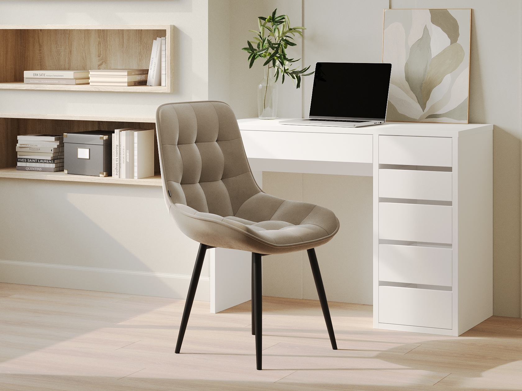 Стул Дэвид привлекает комфортной посадкой и универсальным дизайном. Сиденье и спинка выполнены в мягкой обивке, которая делает интерьер уютнее. Металлический каркас выдерживает большие нагрузки и продлевает срок службы. Модель отлично дополнит как обеденную зону, так и спальню или гостиную.