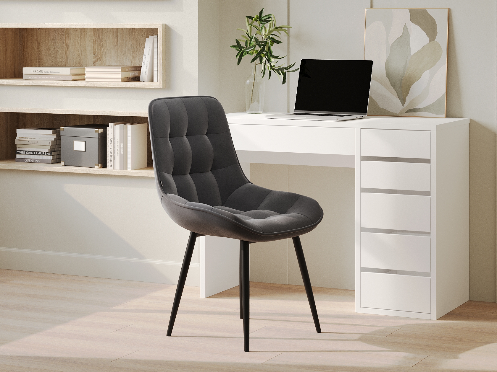 • Стальной, микровелюр / Белый, металл Стальной, микровелюр / Белый, металл