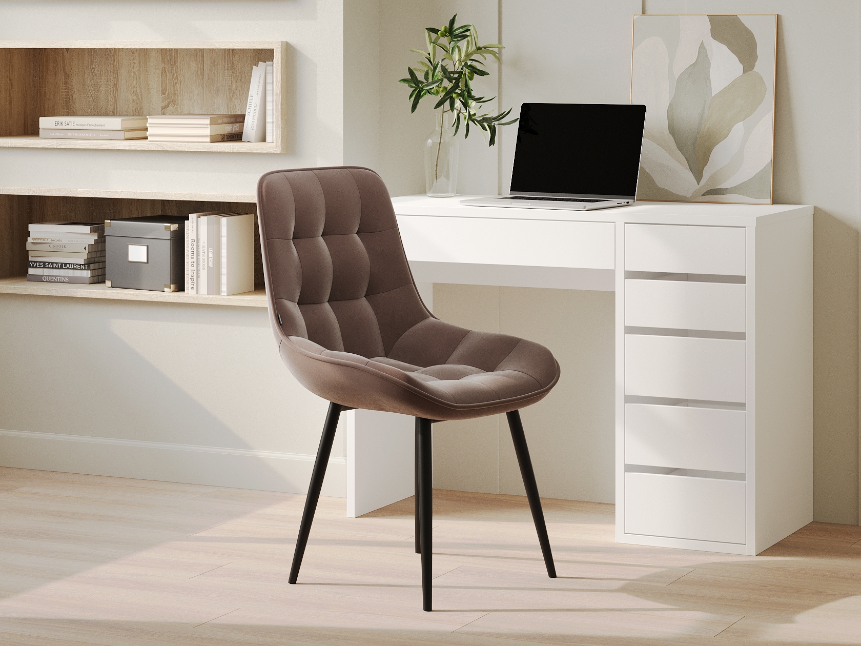 Стул Дэвид привлекает комфортной посадкой и универсальным дизайном. Сиденье и спинка выполнены в мягкой обивке, которая делает интерьер уютнее. Металлический каркас выдерживает большие нагрузки и продлевает срок службы. Модель отлично дополнит как обеденную зону, так и спальню или гостиную.