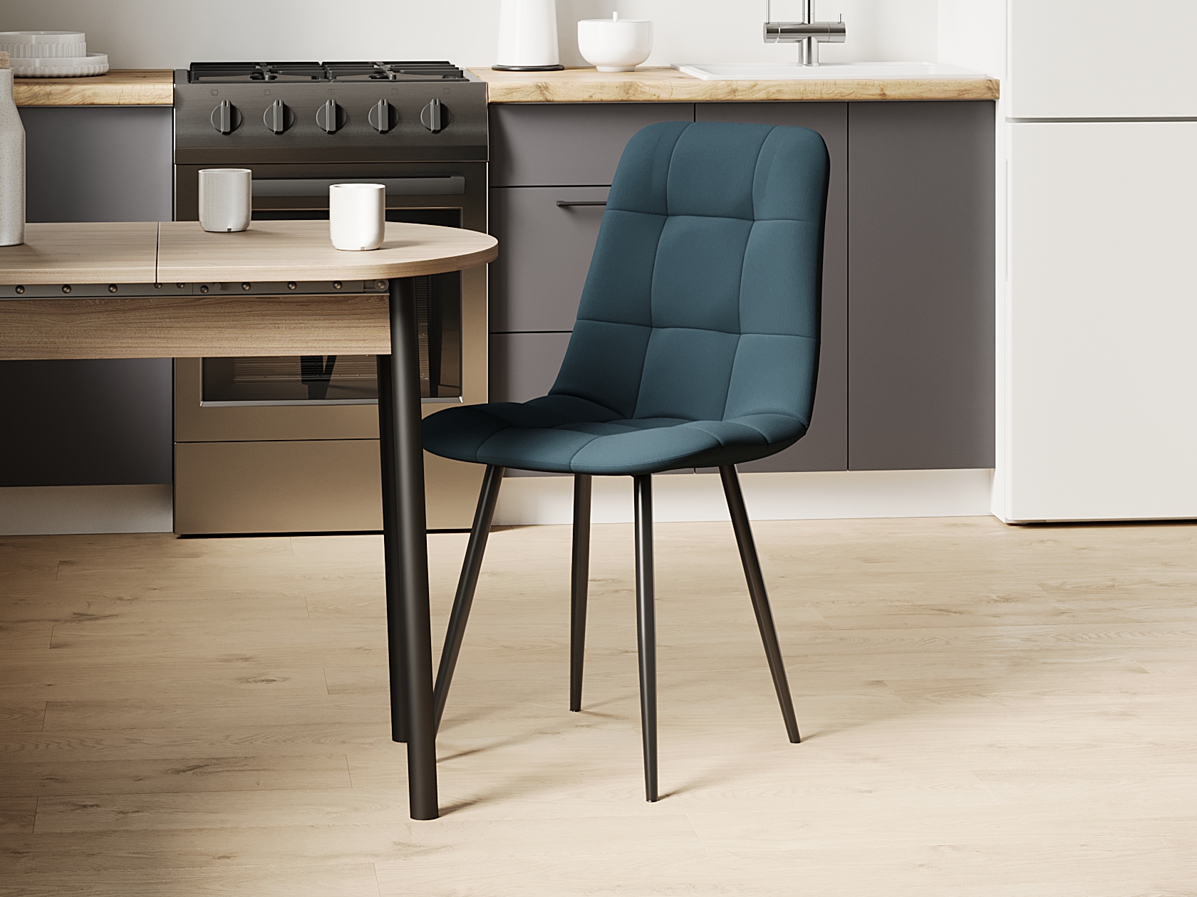 Стул можно вплотную придвинуть к столу, сэкономив пространство. Актуально для небольшой комнаты или кухни.