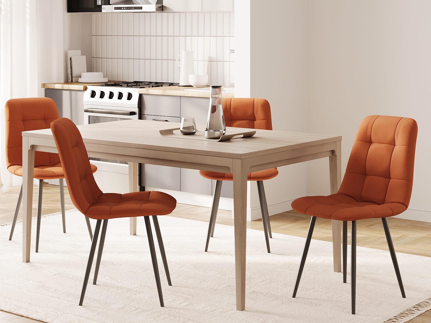 Стул можно вплотную придвинуть к столу, сэкономив пространство. Актуально для небольшой комнаты или кухни.