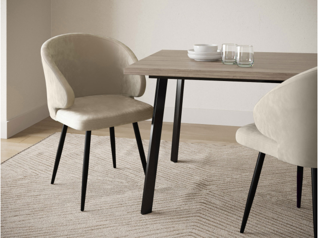 Округлая спинка стула Себастьян плавно переходит в подлокотники, что помогает долгое время сохранять комфортное положение. Металлические ножки делают модель прочной и надежной, а мягкая обивка дарит приятные тактильные ощущения.