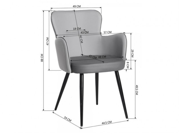 Высота сиденья составляет 49 см. Ножки из светлого дерева.