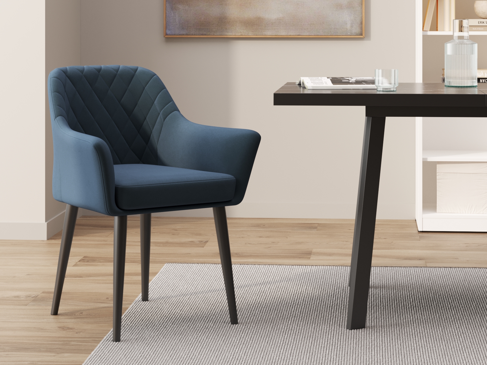 Стул Веббер дополнит интерьер гостиной или кухни. Мягкие спинка и подлокотники подарят комфорт и расслабление во время отдыха. Высокие ножки обеспечат устойчивость модели. Декоративная ромбовидная строчка станет стильным акцентом обстановки.