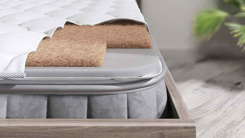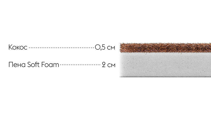 В составе топпера Орто 5 дабл / Orto 5 double два наполнителя разной жесткости. Упругий слой кокосовой койры выравнивает поверхность матраса или дивана, скрывая стыки и продавленные участки. Наполнитель из гипоаллергенного пенополиуретана делает спальное место более мягким и комфортным, создавая условия для полноценного отдыха.