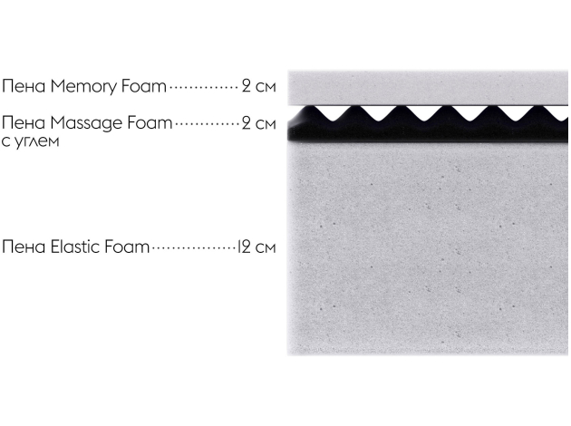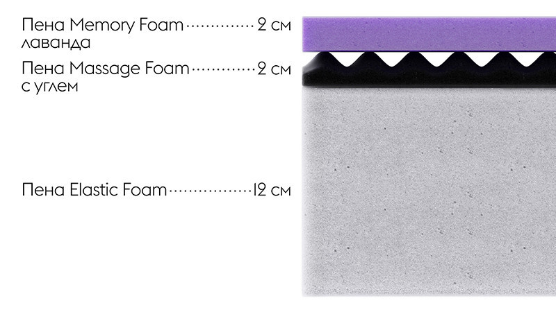 Матрас Комфорт Л 17 мемори / Comfort L 17 memory — один из самых мягких в линейке. Верхний слой — вязкоэластичная пена Мемори Фоам / Memory Foam, которая мягко подстраивается под особенности анатомии, оптимально распределяет вес тела, снижая нагрузку в местах соприкосновения с поверхностью. Это позволяет удобно расположиться на время сна и дает полноценный отдых мышцам и суставам. Рельефная поверхность пены Массаж Фоам / Massage Foam максимально раскрывает свойства верхнего слоя, а угольная пропитка нейтрализует неприятные запахи. Прочная основа матраса — инновационная пена средней жесткости Эластик Фоам / Elastic Foam.