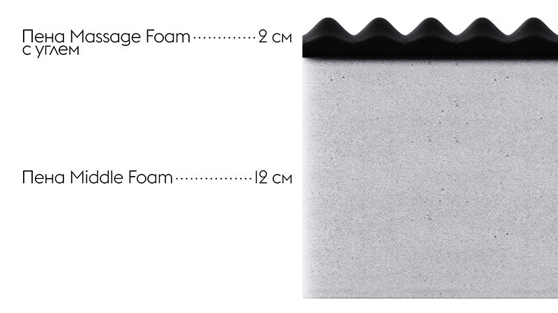 Коллекция First — базовая линейка моделей для дачи, съемной квартиры или гостевой комнаты. Беспружинный матрас средней жесткости First 15 relax можно использовать также в качестве топпера для выравнивания спального места. Рельефная поверхность верхнего слоя Massage Foam создает легкий массажный эффект и способствует приятному расслаблению, а угольная пропитка нейтрализует неприятные запахи. Для удобства хранения и транспортировки модель можно скручивать в рулон.
