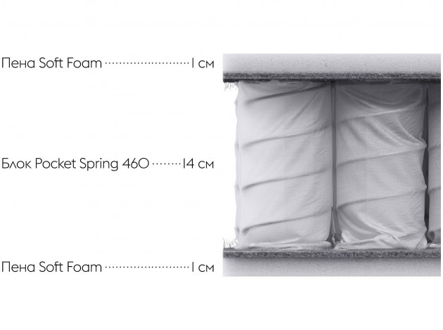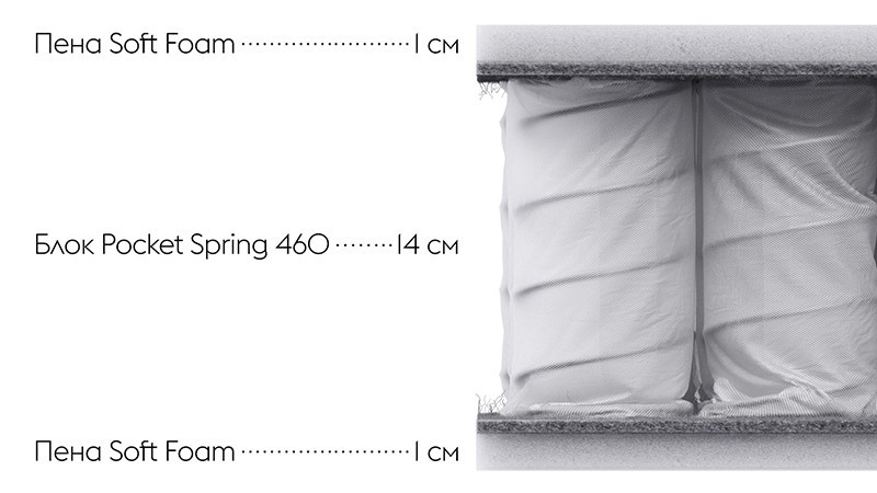 Мягкие слои пены смягчают поверхность пружинного блока и создают особый комфорт во время сна.