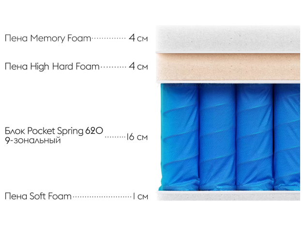 Пружинный матрас Статус Ультра С 28 топ / Status Ultra S 28 top — модель средней жесткости с идеальным сочетанием слоев. Пришивной топпер с пеной Мемори Фоам / Memory Foam деликатно обволакивает тело и снимает напряжение с мышц. В основе — 9-зональный пружинный блок Покет Спринг / Pocket Spring 740, который идеально подстраивается под вес человека и поддерживает позвоночник в правильном положении. Умные пены с гипоаллергенным составом защищают блок от деформации и усиливают анатомические свойства модели.