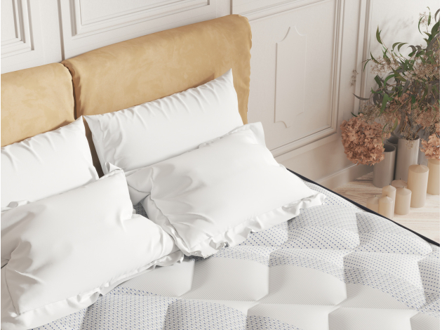 Объемный чехол с красивой стежкой придает матрасу статусный вид и делает поверхность особенно комфортной. Премиальная ткань с антибактериальной пропиткой свободно пропускает воздух, что способствует здоровому микроклимату спального места.