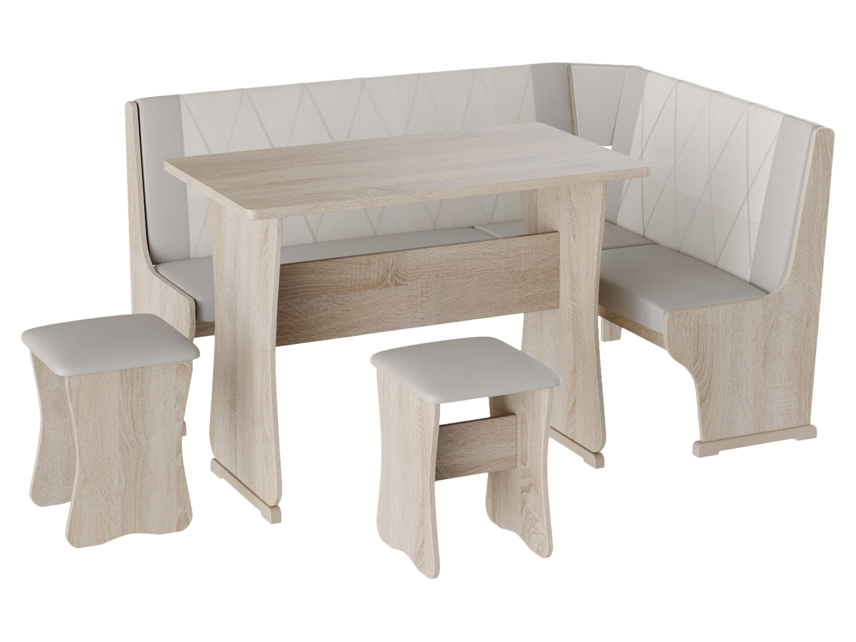 Кухонный уголок Гамма Дуб Сонома, ЛДСП / Серый, экокожа / Белый, экокожа