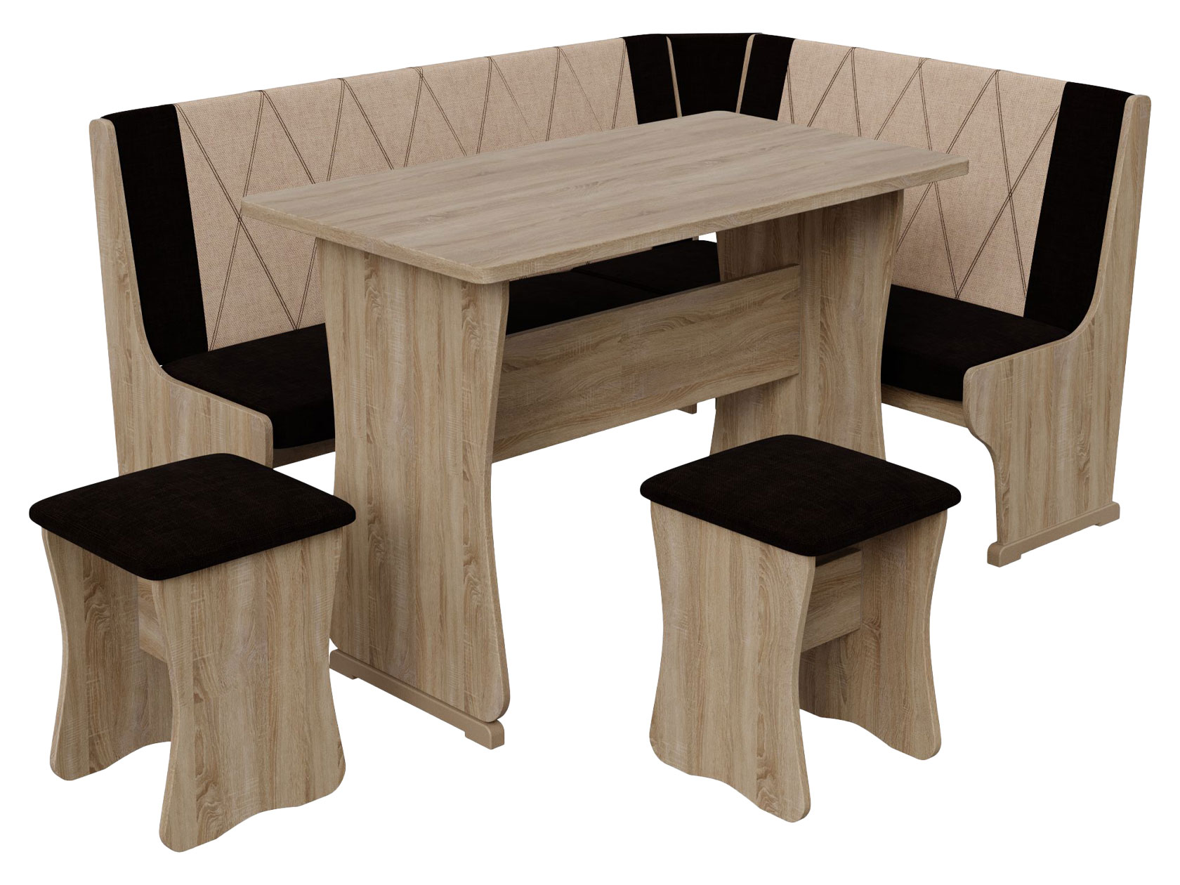 Кухонный уголок Гамма Дуб Сонома, ЛДСП / Коричневый, ткань / Бежевый, ткань