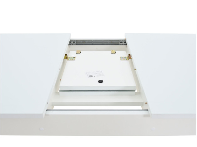 Чтобы разложить стол, нужно раздвинуть две части столешницы, достать из подстолья дополнительную вставку «бабочка» и установить между крыльев столешницы. Синхронный механизм трансформации позволяет раздвинуть столешницу одной рукой.