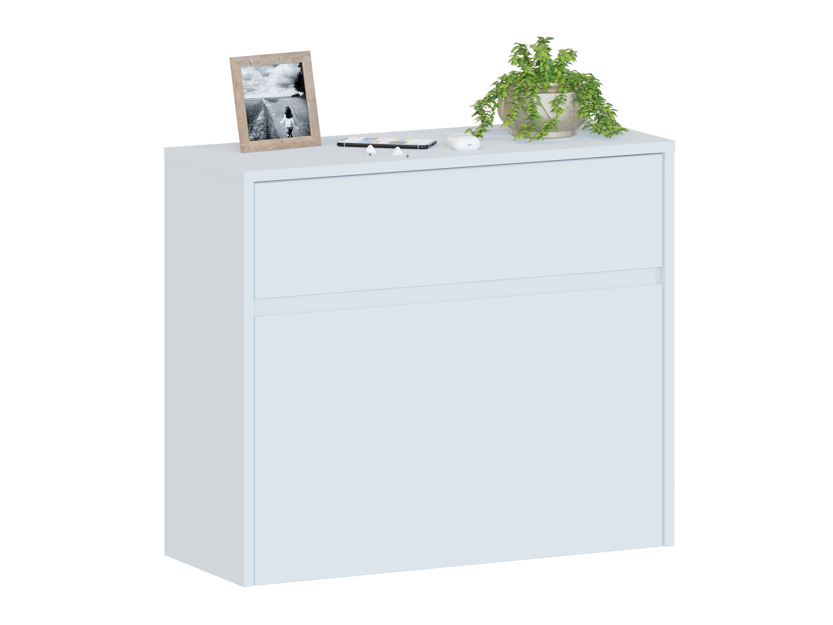 Обувница Бронка станет незаменимым элементом прихожей, позволяя хранить туфли, сапоги и кроссовки в одном месте. Внутреннее пространство поможет аккуратно разместить до шести пар. Дверцы открываются за скошенный под углом край фасада. Современный дизайн и компактные габариты легко адаптировать под различные интерьерные стили.