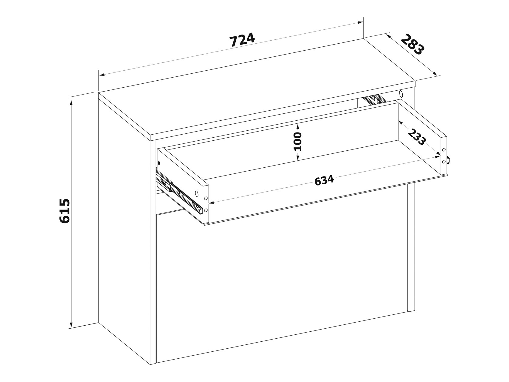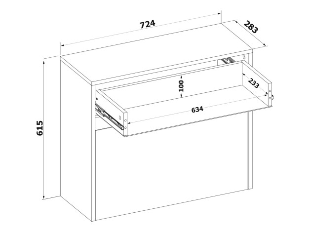 - Внутренние габариты ящика (ВхШхГ): 10 х 63,4 х 23,3 см.