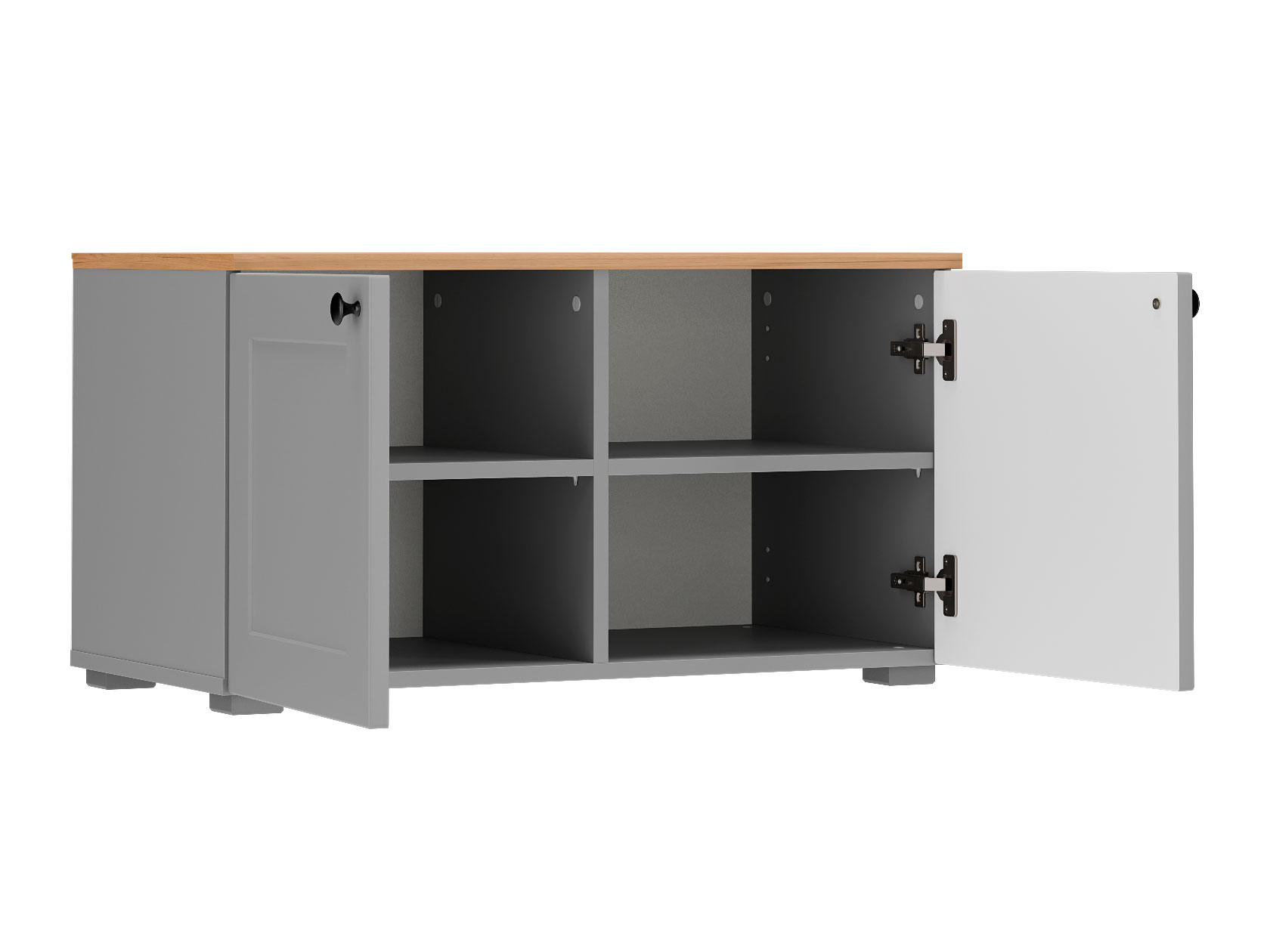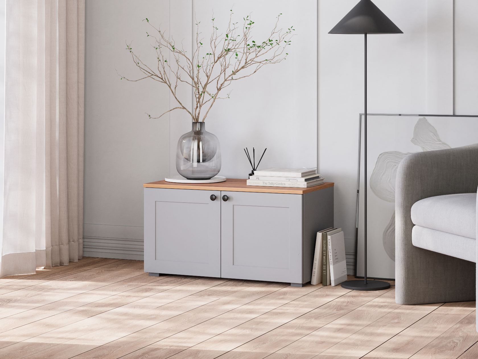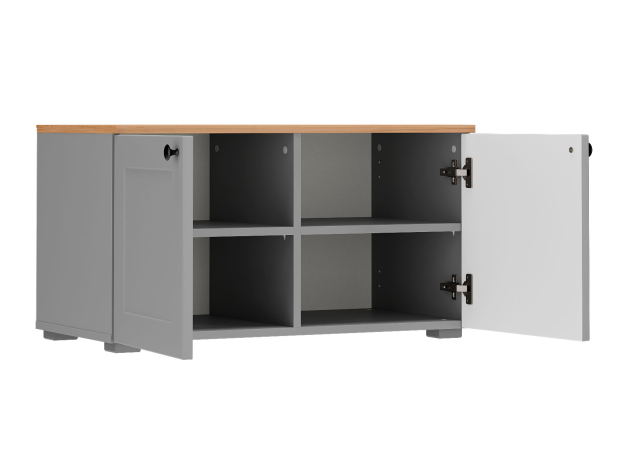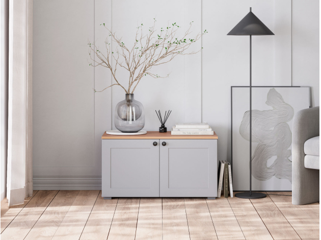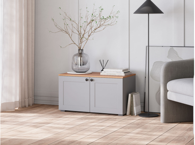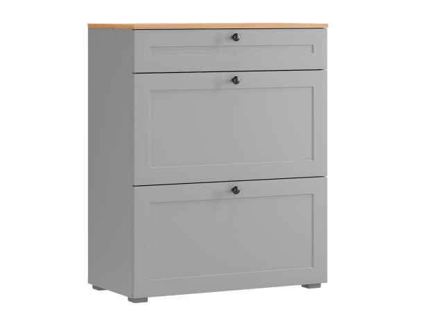 Обувница Хеминг Стандарт — практичное решение для компактного хранения в небольшой прихожей. За распашными дверцами скрыты четыре отдельные секции, куда поместятся как уличные туфли и кроссовки, так и домашние тапочки. На поверхность можно поставить сумку или присесть для удобного переобувания. Лаконичные рамочные фасады дополнены ручками-кнопками. Такой дизайн удачно смотрится в любом интерьере.