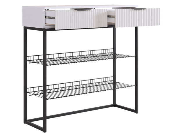 Обувница Классная поможет сэкономить пространство в прихожей. Благодаря удобной компактной конструкции модель прекрасно подойдет для небольшого коридора. Металлические полки устойчивы к влаге и легко очищаются от загрязнений. Открытые ниши позволяют разместить несколько пар обуви, а выдвижные ящики подходят для хранения подручных мелочей.