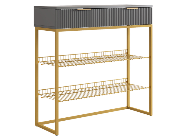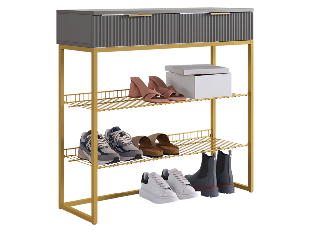 Обувница Классная поможет сэкономить пространство в прихожей. Благодаря удобной компактной конструкции модель прекрасно подойдет для небольшого коридора. Металлические полки устойчивы к влаге и легко очищаются от загрязнений. Открытые ниши позволяют разместить несколько пар обуви, а выдвижные ящики подходят для хранения подручных мелочей.