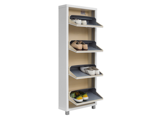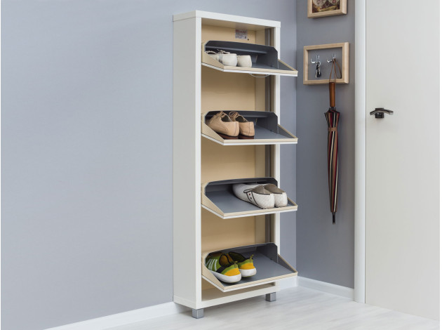 Обувница Люкс 4 поможет создать компактную систему хранения в современной прихожей. Продуманная конструкция обеспечит синхронное открытие лотков и позволит удобно разместить всю необходимую обувь.