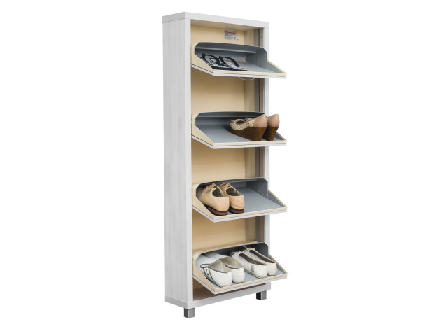 Обувница Люкс 4 поможет создать компактную систему хранения в современной прихожей. Продуманная конструкция обеспечит синхронное открытие лотков и позволит удобно разместить всю необходимую обувь.
