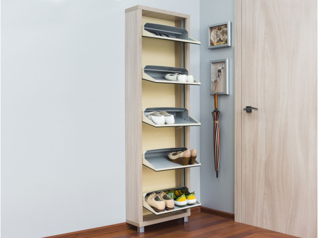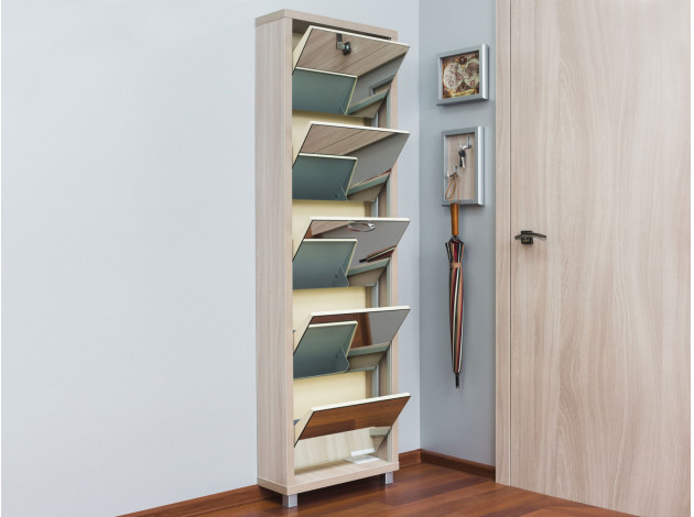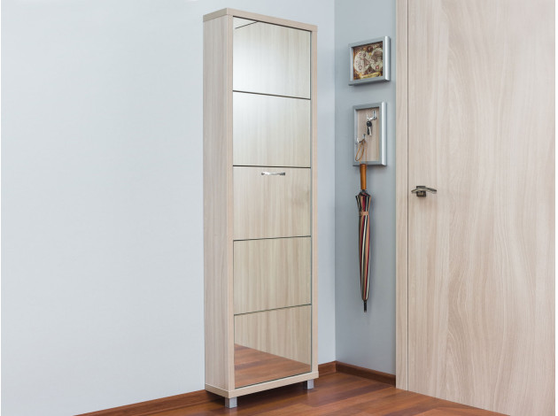 Обувница Люкс 5 Ясень Шимо светлый / Зеркало