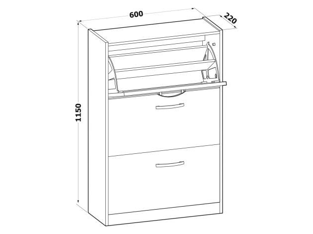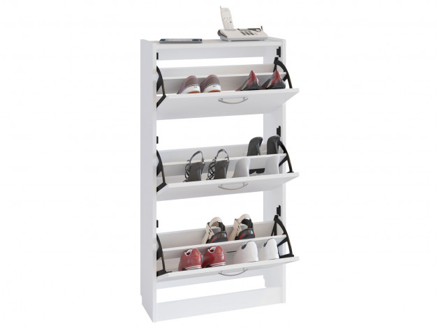Лаконичная обувница Моренго 9 гармонично дополнит любой интерьер прихожей и позволит держать обувь в порядке и в быстром доступе. Модель оснащена тремя отделениями и рассчитана на восемь пар невысокой обуви на плоской подошве. Для устойчивости рекомендуется прикрепить изделие к стене — вся необходимая для этого фурнитура входит в комплект.