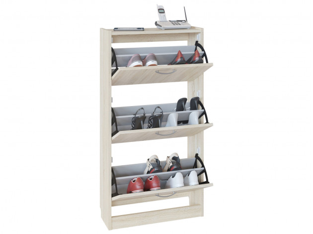Лаконичная обувница Моренго 9 гармонично дополнит любой интерьер прихожей и позволит держать обувь в порядке и в быстром доступе. Модель оснащена тремя отделениями и рассчитана на восемь пар невысокой обуви на плоской подошве. Для устойчивости рекомендуется прикрепить изделие к стене — вся необходимая для этого фурнитура входит в комплект.