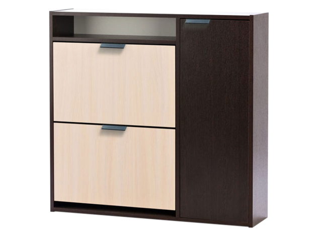 • Подходящий для любой прихожей или гардеробной комнаты обувница Комфорт ШК-2 с полками за дверцей и двумя отсеками для обуви. А также небольшой нишей сверху для расположения необходимых мелочей.