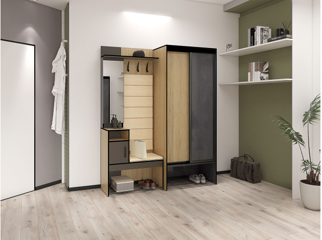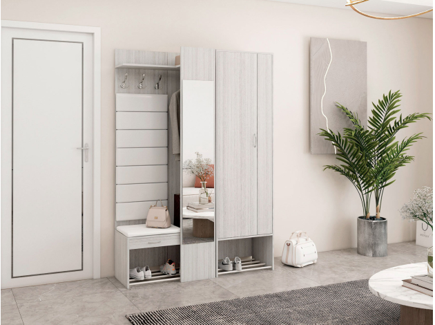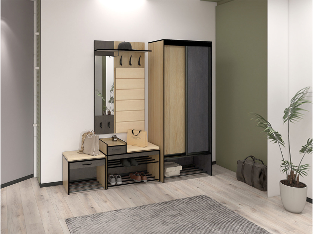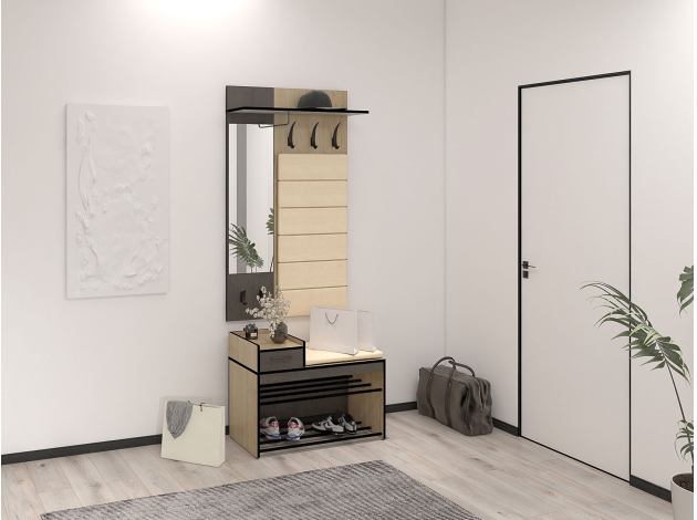 Обувница Ольга в лаконичном исполнении удачно дополнит интерьер прихожей. Сиденье с мягкой обивкой обеспечит особое удобство. Для обуви предусмотрена полочка в виде металлических перекладин, а выдвижной ящик подойдет для хранения различных мелочей.