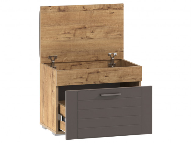 Обувница Ливорно добавит в интерьер спальни, прихожей или гостиной функциональности и удобства. Модель оснащена мягким посадочным местом с откидной крышкой, а также вместительным выдвижным ящиком для хранения.