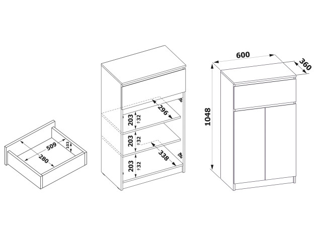 - Материал: ЛДСП 16 мм с кромкой ПВХ 0,4 мм.