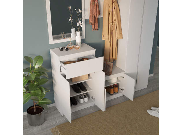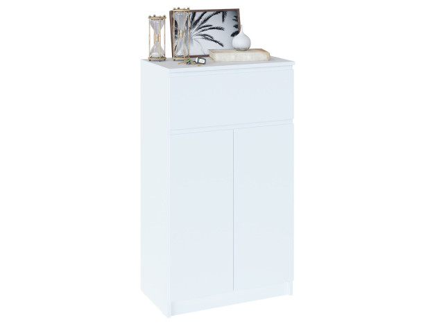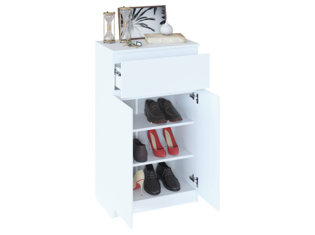 Обувница Орион поможет организовать аккуратное хранение, не загромождая прихожую. Модель разместит до девяти пар низкой обуви. В то же время предусмотрен вариант хранения высокой обуви, для этого нужно снять внутреннюю полку, чтобы расширить полезное пространство. Выдвижной ящик на шариковых направляющих обладает плавным бесшумным ходом и отлично подойдет для размещения ключей, кошелька и полезных мелочей. Фасады открываются при помощи удобного спила под 45 градусов.