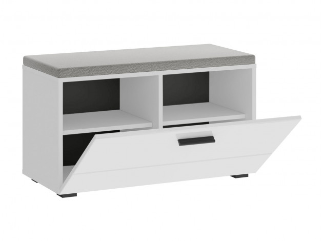 Обувница Глосс — отличное решение для небольшого коридора. Модель объединила в себе удобную зону для хранения и удобное место для переобувания. Внутреннее наполнение представлено четырьмя автономными зонами для невысокой обуви, аксессуаров и нужных мелочей.