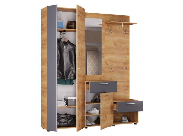 Обувница Сафари — удачное решение для малогабаритной прихожей. Компактная по ширине и глубине модель впишется даже в самое ограниченное пространство. Полки за распашной дверцей разместят обувь, выдвижной ящик — необходимые мелочи, а зеркало позволит оценить внешний вид перед выходом из дома.