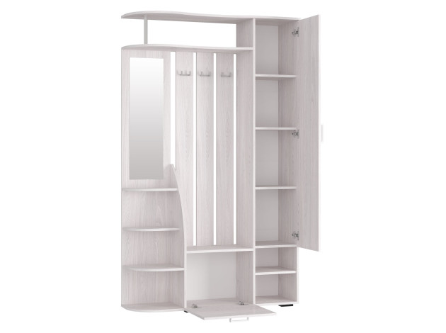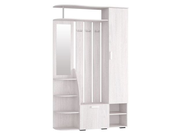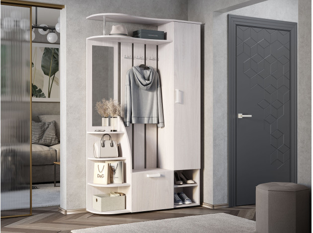 Прихожая Анора — отличный выбор для современного интерьера. Практичная мебель поможет удобно разместить повседневную верхнюю одежду, обувь и аксессуары при входе в квартиру. Гладкие фасады с белоснежными ручками устойчивы к износу и повреждениям. Открытые полки не загромождают пространство, а благодаря скругленным углам создают комфортную обстановку даже в тесном коридоре.