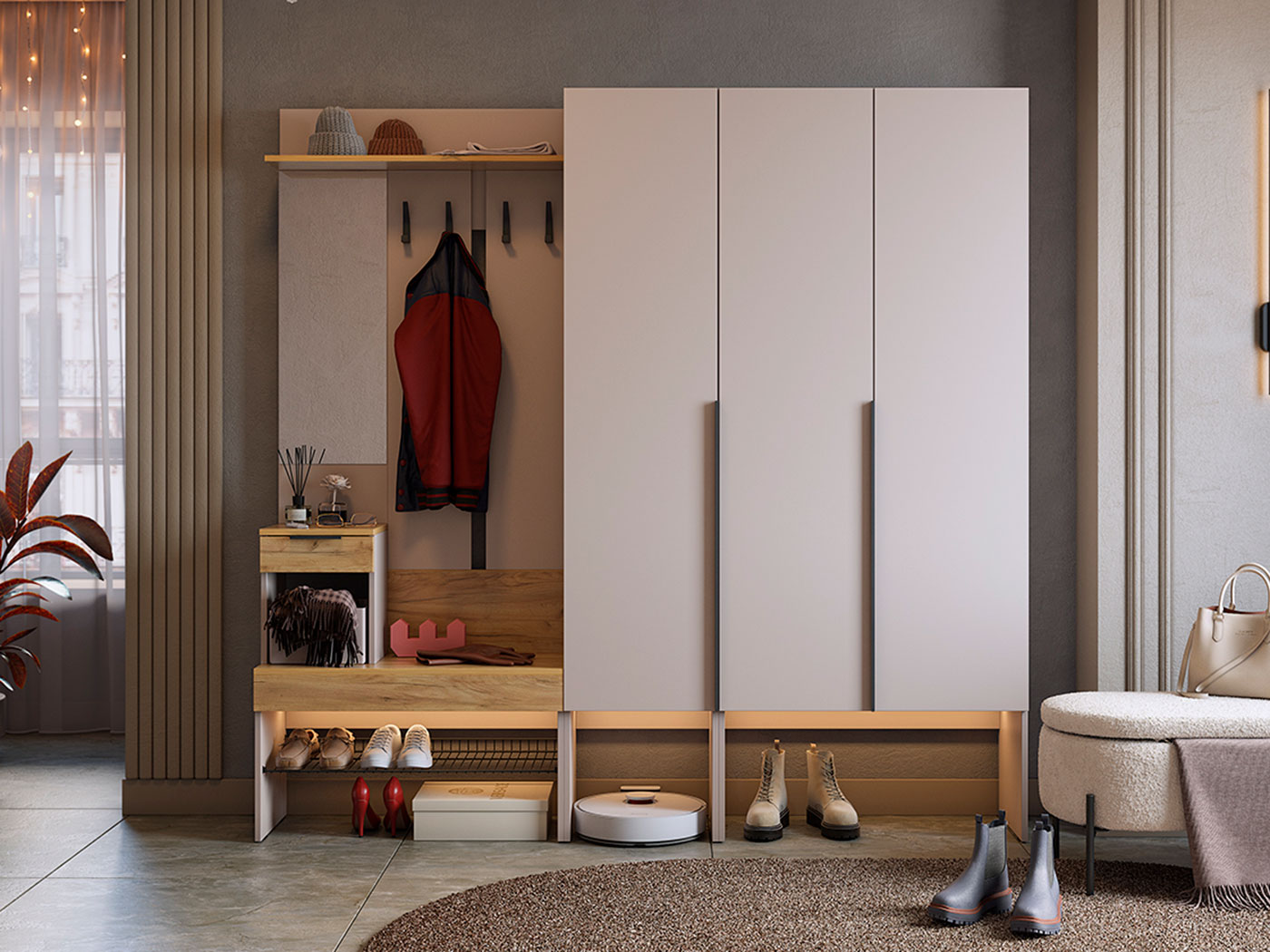 Прихожая Баско Ультра подойдет хранения всех необходимых вещей большой семьи. Распашные шкафы со штангой и полками обеспечат место для курток, пальто, коробок с обувью и аксессуаров. Лаконичный дизайн дополнен вертикальными ручками, что прекрасно сочетается с разными стилями интерьера.
