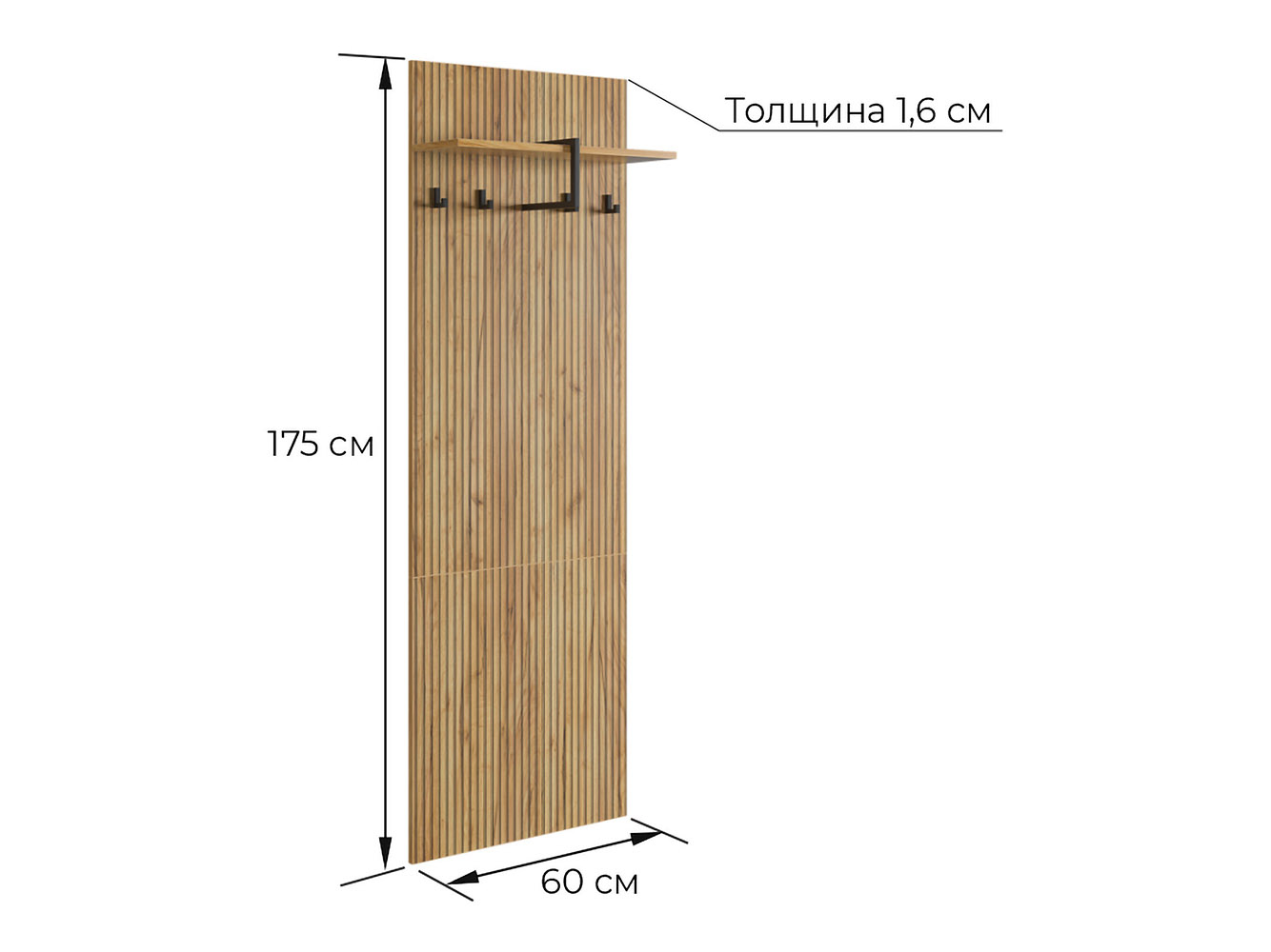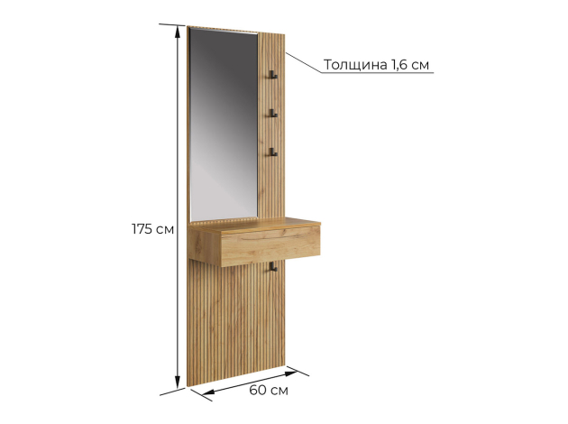 - Настенная вешалка: 175 x 60 x 21,2 см.