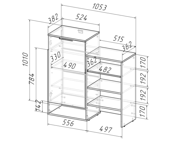 - Шкафы требуется крепить к стене. Крепежи входят в комплект.